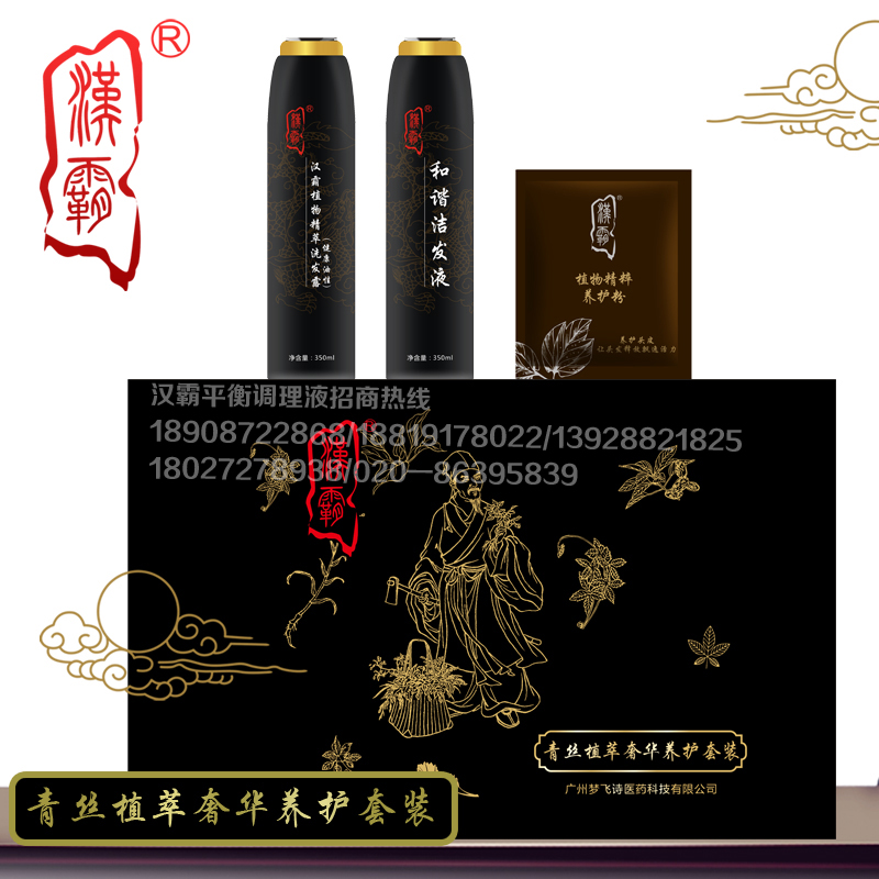 汉霸平衡调理液产品使用说明书;1号剂主要功能是激活毛囊(黑色套盒)2号剂主要功能是生发(棕色套盒)3号剂主要功能是固发(青色套盒) 本产品的使用方法为:每天晚上用洁发液代替洗发水